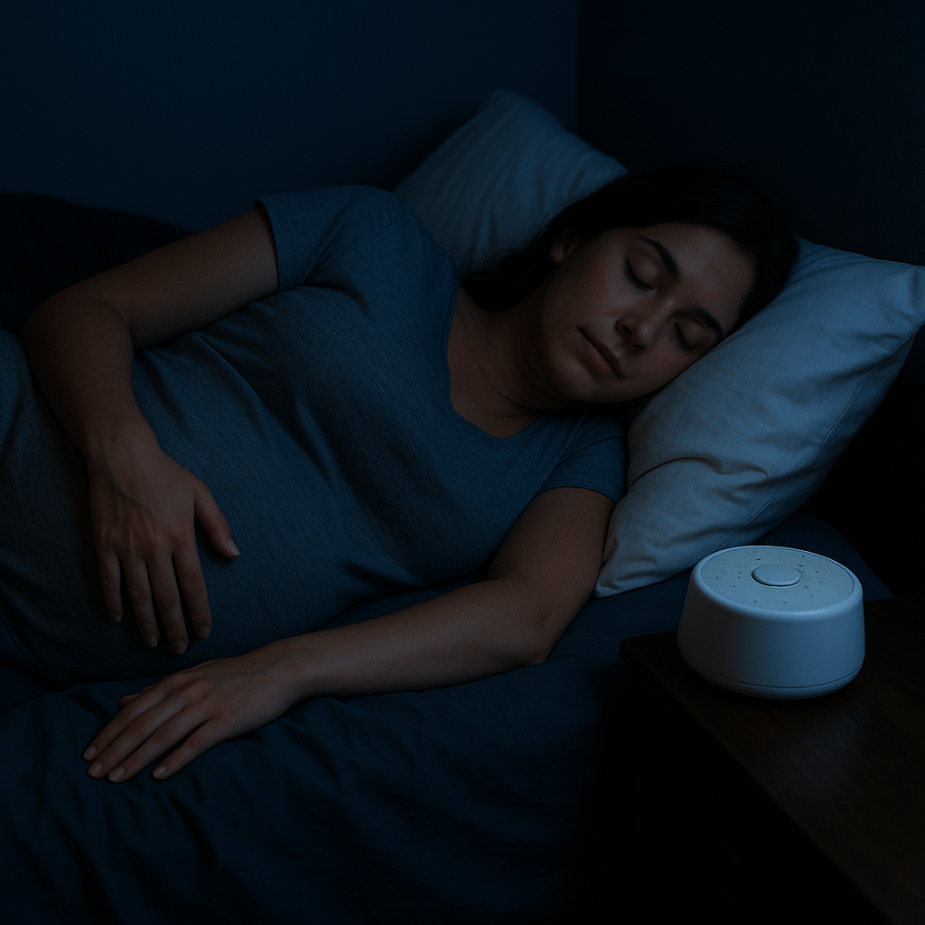 Pregnancy often makes you more sensitive to sounds. A white noise machine creates a soothing environment that helps you drift off faster and stay asleep longer.
