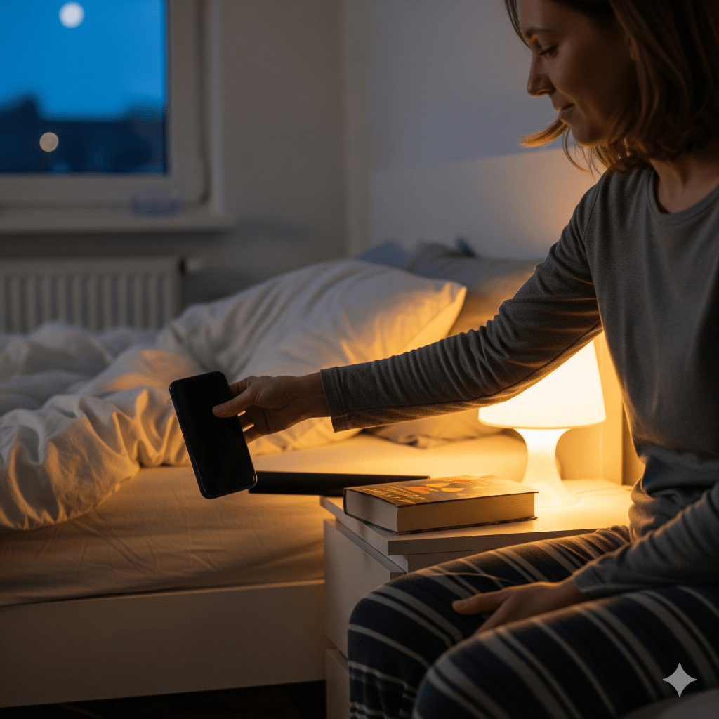 - Ideas: read a calming book, light stretching, soft music, or warm herbal tea.